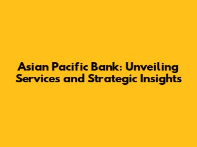 Hey everyone! Ever heard of Asian Pacific Bank? If you're looking for a financial institution that offers a range of services, you've come to the right place. Today, we're diving deep into what Asian Pacific Bank is all about, exploring its services, and uncovering some strategic insights that could be super helpful for you. Whether you're a seasoned investor, a small business owner, or just starting to manage your finances, understanding the landscape of banking and financial services can make a huge difference. So, grab a coffee (or your beverage of choice), get comfy, and let's explore everything you need to know about Asian Pacific Bank. This isn't just about listing services; it's about understanding how they can fit into your financial goals. We'll break down the basics, discuss some advanced strategies, and hopefully, give you a clearer picture of whether Asian Pacific Bank is the right fit for you. Let's get started and see what this bank has to offer, shall we?
